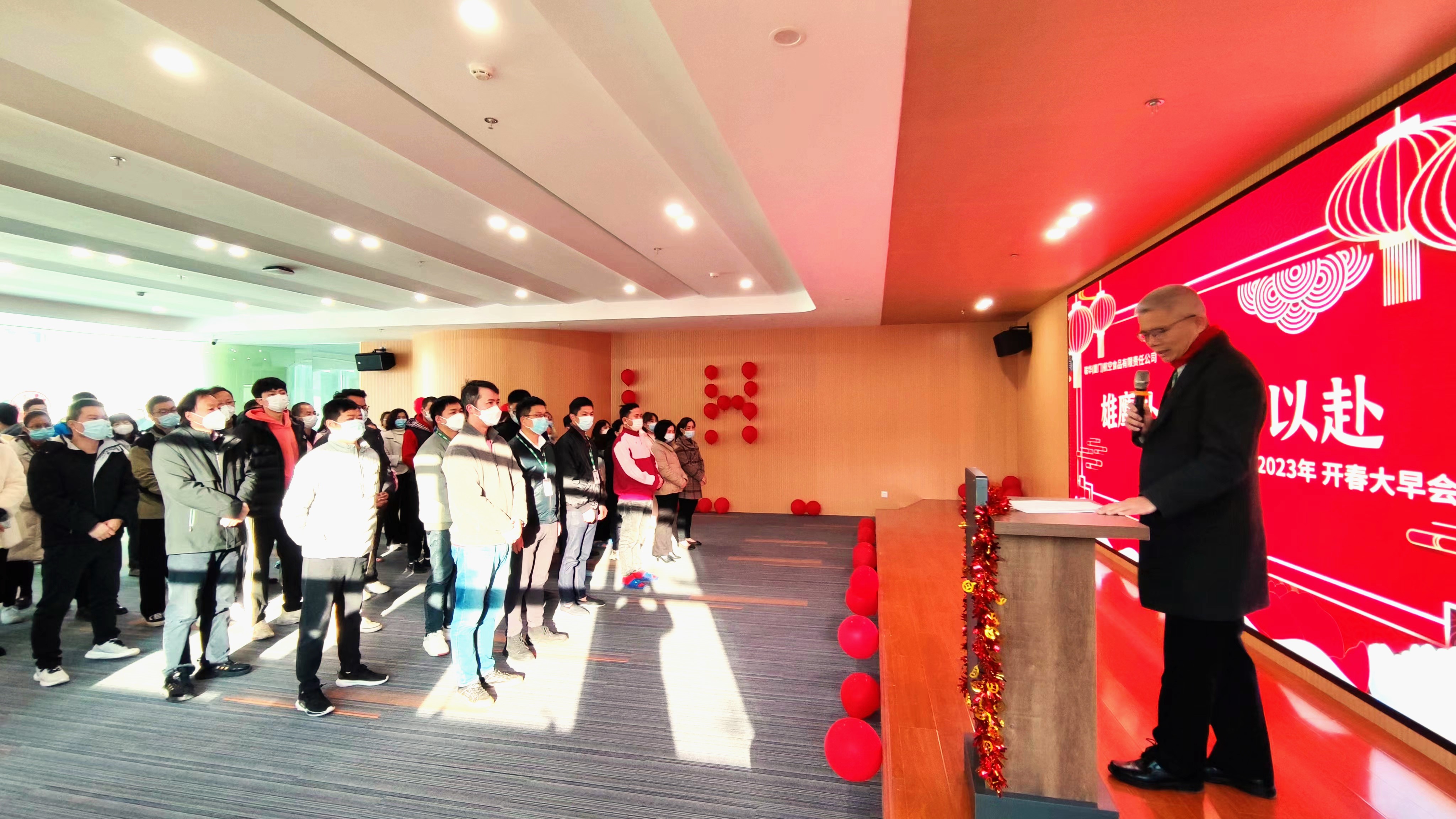 正月初八早上8點整,聯華航空食品公司一樓培訓室內,百名員工整齊列隊精神飽滿地出席聯華公司重啟以來的第一個開春早會。